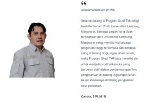 Ketua Program Studi Teknologi Hasil Perikanan (THP), Candra, S.Pi., M.Si., menegaskan bahwa THP hadir untuk menjawab tantangan pengelolaan dan pengolahan sumber daya perikanan yang berkelanjutan serta bernilai tambah tinggi.