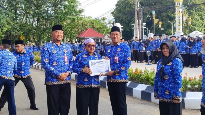 pro1.id, MARTAPURA – Pemerintah Kabupaten Banjar melalui Dinas Komunikasi, Informatika, Statistik dan Persandian Kabupaten Banjar (DKISP) memberikan penghargaan kepada SKPD dan kecamatan yang dinilai paling aktif mempublikasikan kegiatan pemerintahan. Penghargaan diserahkan usai Apel Kesadaran Nasional Lingkup Kabupaten Banjar, Rabu (18/02/2026).