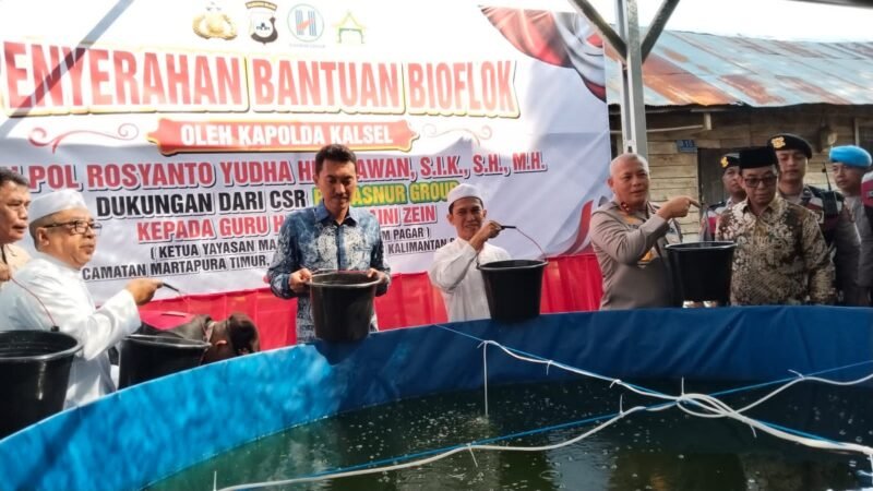 pro1.id, MARTAPURA – Upaya peningkatan ketahanan pangan dan kesejahteraan masyarakat kembali diperkuat melalui dukungan langsung dari Kapolda Kalimantan Selatan, Irjen Pol Rosyanto Yudha Hermawan, bersama Bupati Banjar, H. Saidi Mansyur. Pada Kamis (2/10/2025), keduanya menyerahkan bantuan berupa kolam bioflok dan benih ikan kepada Yayasan Majelis Arsyadi Dalam Pagar yang dipimpin oleh Guru H. Ahmad Zaini Zein.