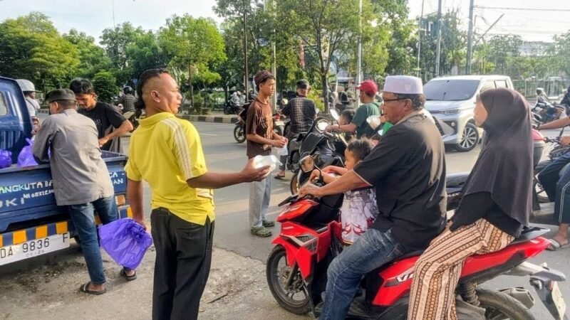 Kegiatan berbagi tersebut dilaksanakan di depan Masjid Agung Al Karomah Martapura dengan menyasar para pengendara serta warga yang melintas menjelang waktu berbuka puasa.