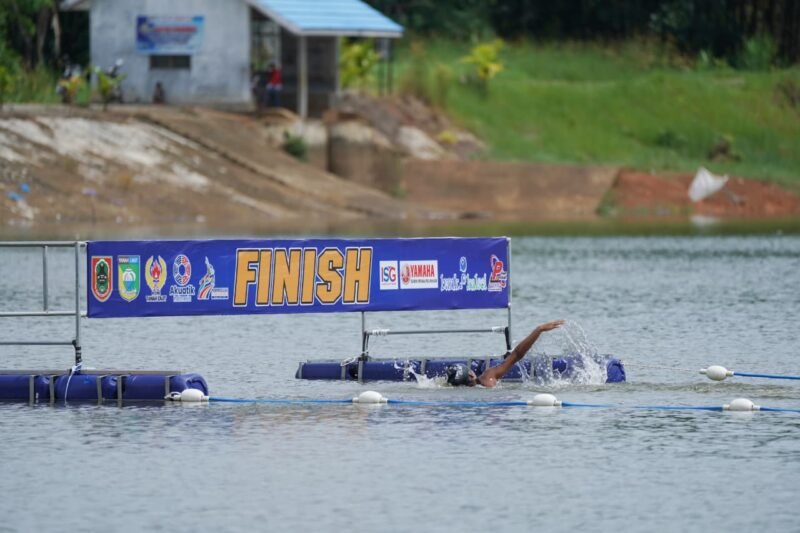 Bertanding di Waduk Gunung Makmur, Kabupaten Tanah Laut, Jumat (24/10/2025), perenang putri Banjar, Rania (19), sukses finis di urutan kedua pada nomor 2.000 meter putri dan berhak mengantongi medali perak.